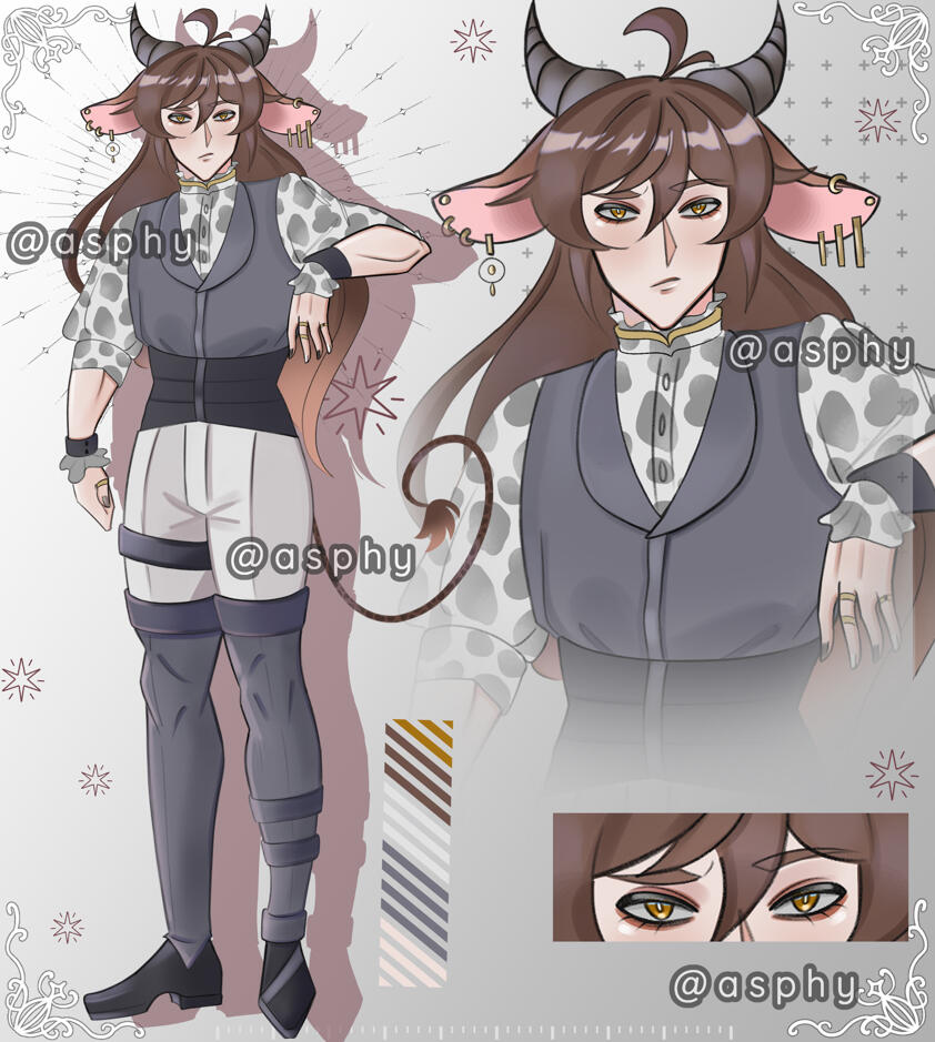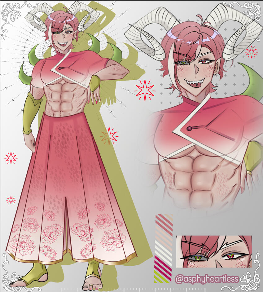 full color +halfbody + eyes close up + color palette